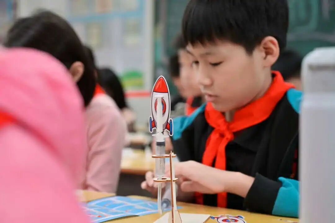 智能科技课程化身为一个微型“航天发射基地”,充满了探索与创造的激情。本次课程的主题是“小火箭,大梦想”,老师们不仅用生动易懂的语言讲解了火箭飞行的基本原理,还带领孩子们亲手制作了属于自己的简易火箭装置。从认识火箭的整流罩、箭体到尾翼,每一个部件都在他们手中从零开始组装。当孩子们利用身边常见的材料(如塑料瓶、卡纸等)成功搭建起火箭模型时,那种通过自己动手将抽象科学知识变为触手可及实物的成就感,让整个教室沸腾。